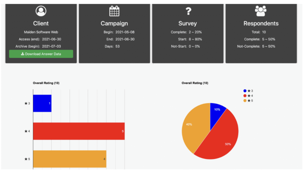 From quick surveys to in-depth experience tracking, you’ll get clear insights into what customers love—and what needs attention. With dashboard charts, instant access, and data download for integration into your existing systems, you can make smarter decisions that boost satisfaction, loyalty, and growth.